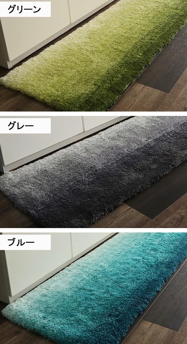 | オールシーズン使える、グラデーションが美しいキッチンマット☆ホットカーペット・床暖房にも対応しています。踏み心地が気持ちよく、夏はサラっと冬は暖かくて快適です♪ |