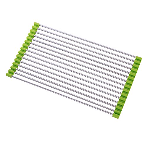 Aboval Roll-up Dish Drying Rack Drainer Stainless Steel Over The Sink Black Foldable 14.6''(L)X9.3''(W) Green