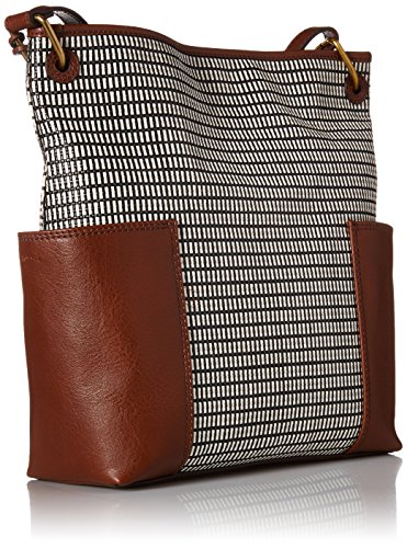 This straw and leather crossbody boasts two exterior slip pockets, two interior slide pockets and an adjustable strap.
