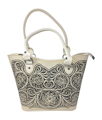 Concealed Carry Zip-Top Shoulder Tote w/ Floral Tooled Leather Handbag Purse For Carrying Your Weapon
