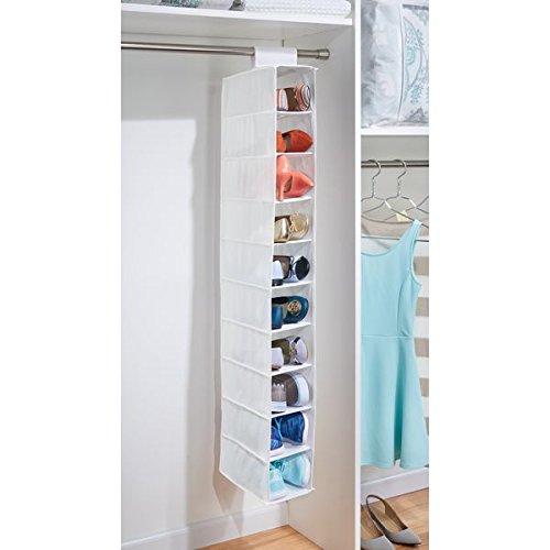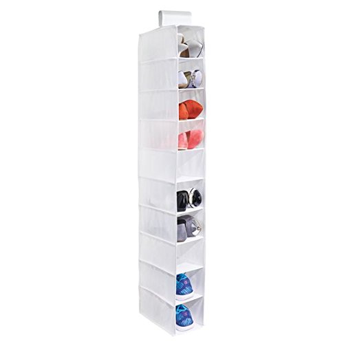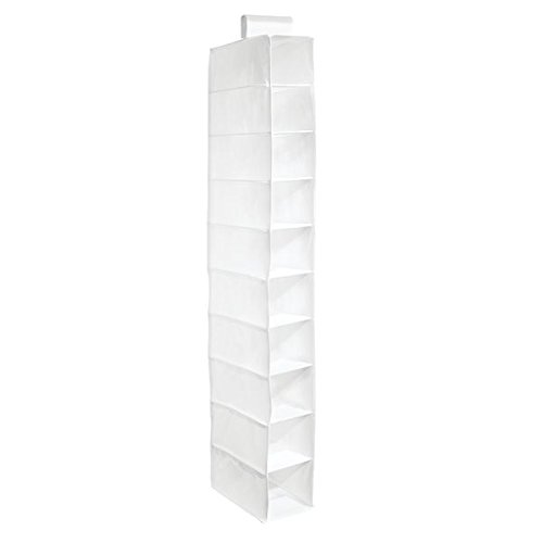 mDesign Closet Hanging Storage Organizer for Clothes, Purses, Shoes - 10 Shelves, White