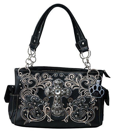 HW Collection Western Large Rhinestone Embroidered Purse Cross Carry Concealed Handbag Shoulder Bag
