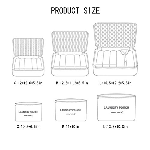【THE PACKING CUBES FOR EVERYWHERE YOU GO】:3 X Packing Cubes, 3 X Laundry Pouch, with Small, Medium and Large sizes. Ideal for active lifestyles such as traveling, backpacking, camping, gym, beach, and yoga.