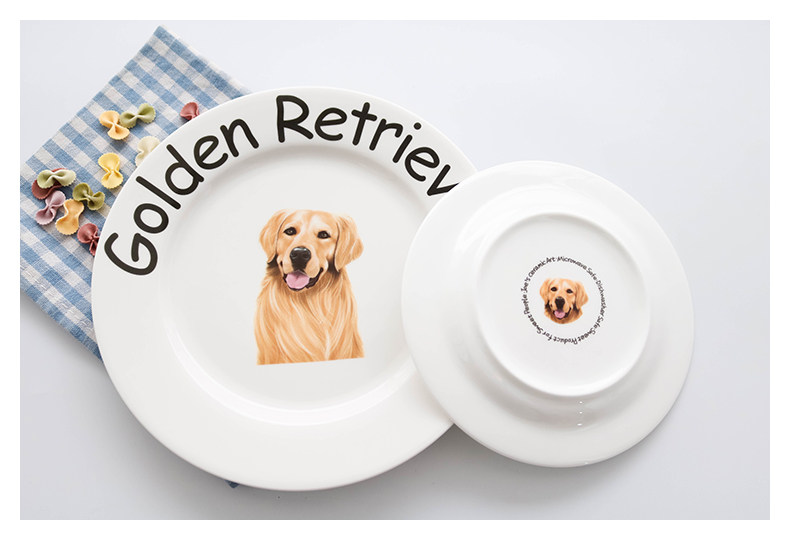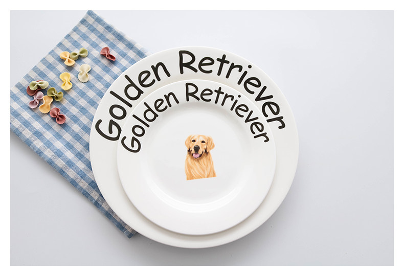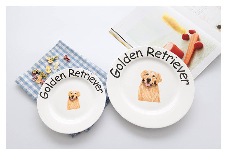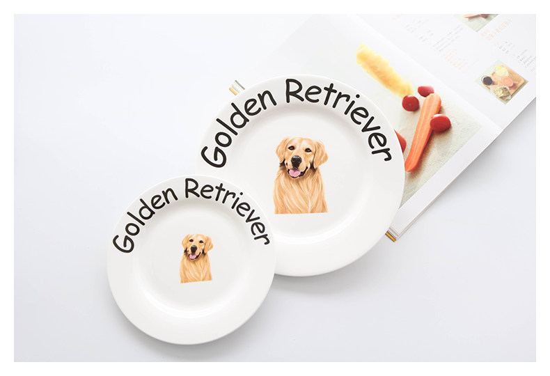 独家设计狗狗系列家用陶瓷餐具呆萌金毛英文字母早餐盘圆形点心盘