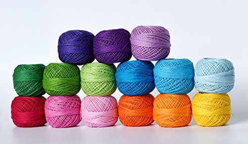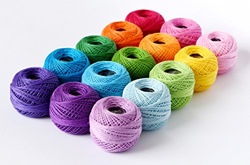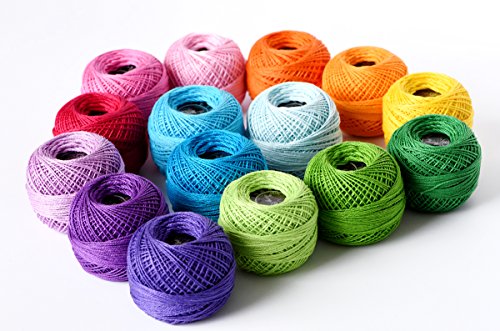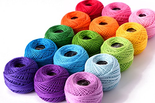 - COLOURFUL THREAD Our wonderful crochet thread amazing 16 different assorted colours. The great variety of threads in this bulk pack are perfect for adults or kids and can be used to make a variety of items, patterns, projects and accessories including doilies, stuffed animals, baby blankets, dolls, phone charms, a keychain and many other gifts. This set of pearl cotton thread balls is soft, silky and does not fluff or kink.