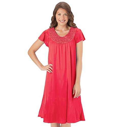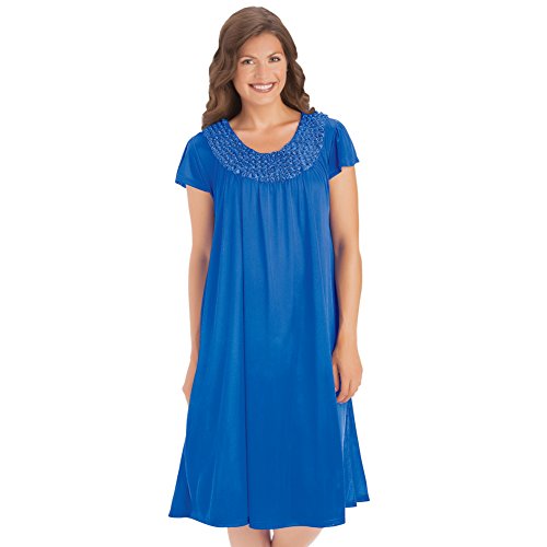 Studio : Collections Etc Publisher : Collections Etc Binding : Apparel Product Description Soft and silky sleepwear features comfortable flutter sleeves and a flattering rounded yoke with tiny floral rosette accents. Machine wash. Polyester; imported. Gown (Approx. 42"L). Colors available in Royal Blue or Red. Sizes available in M(10-12), L(14-16), XL(18-20) or XXL(22-24). 0