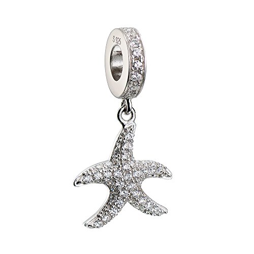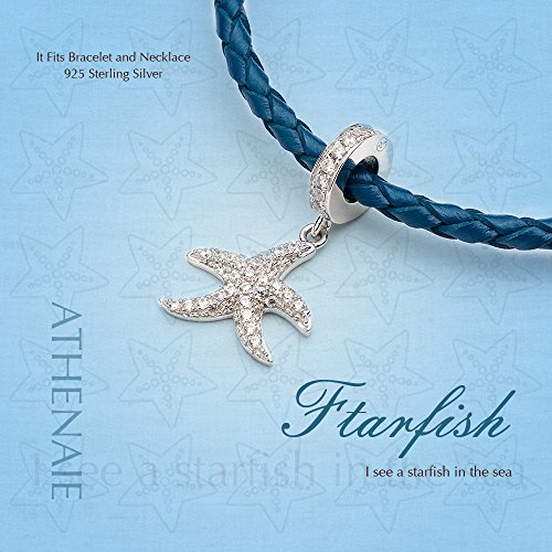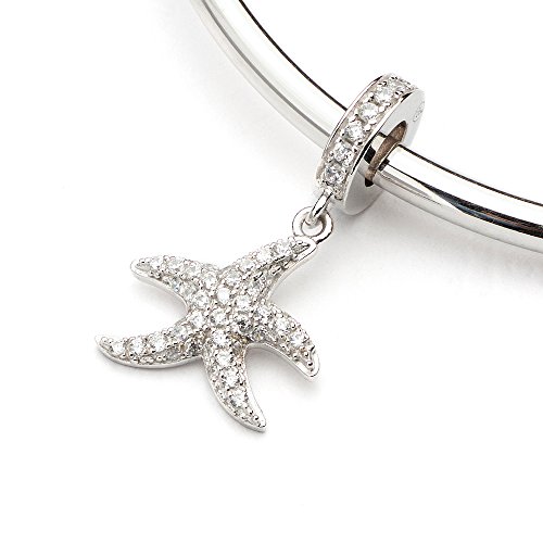 ATHENAIE 925 Silver Plated Platinum with Pave Clear CZ Sparkling Lucky Starfish Pendant Drops Charms