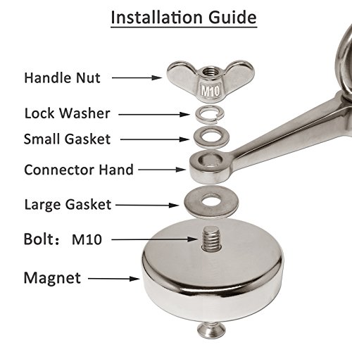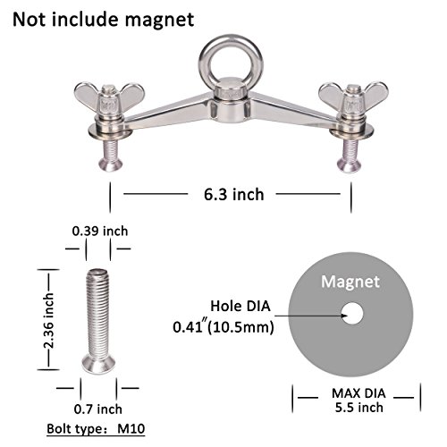 Stainless Steel Fishing Magnet/Salvage Magnet Connecting Bracket for Round Neodymium Magnet hook with 2 Countersunk Handle bolts (Bolt:M10)