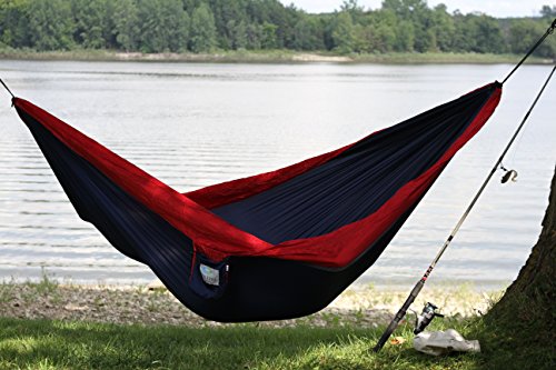 Vivere Parachute Nylon Double Hammock, Navy/Red