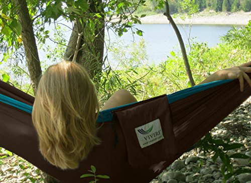 Vivere Parachute Nylon Double Hammock, Chocolate/Turquoise