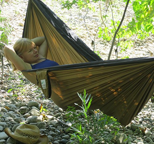 Vivere Parachute Nylon Double Hammock, Black/Sand