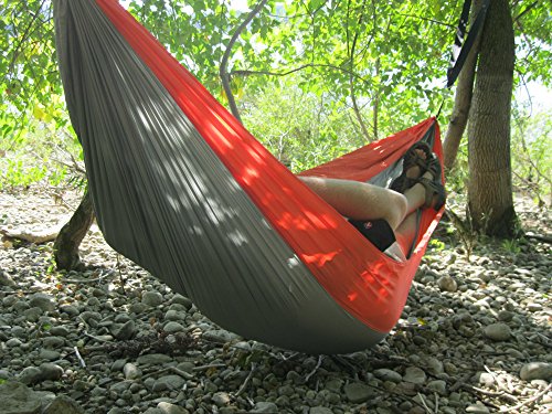 Vivere Parachute Nylon Single Hammock, Grey/Orange