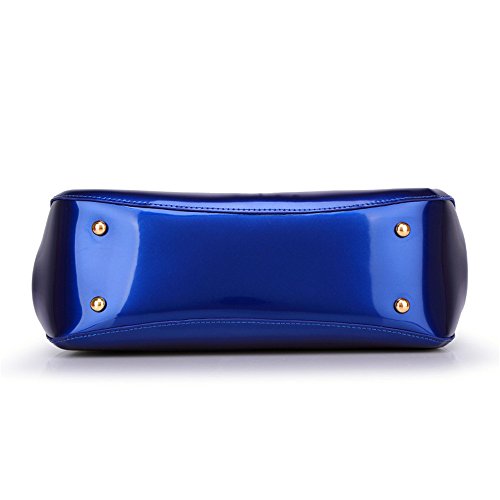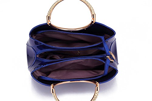 -. Feature : Made with high quality patent leather like a mirror smooth and shiny, hardware selected from the best supplier, light and wear. For office lady , artist, Bridesmaids, bride etc. / Simple style without any embellishment, it relies on the unique classical shape, Sapphire patent leather color and golden woven design double-handle which attracts people's attention instantly. low-key luxury. Suitable for you to carry it in daily-use, such as wedding party, evening party, dating, working, and other social occasions, perfect match.. Is a very useful accessory brighten up your look, also as a gift. / Metal Ring Handles design. This handbag doesn't equipped with a removable shoulder strap. The golden color woven design double-handle makes the purse more noble and Luxury. / Top zipper Closure, and Sandwitch structure, there are 3* main compartment, 1* interior zip pockets and 2* phone pocket. Exterior features 1 back zipper pocket. / Size: 12.2"(L) x 4.33" (W) x 9.44" (H) Please accept 1"-1.5" error.