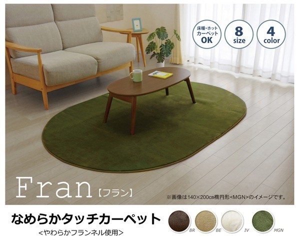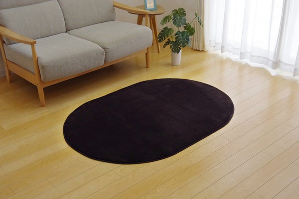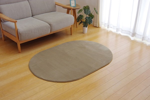 【商品名】ラグマット カーペット だ円 無地 フランネル 『フランアイズ』 ブラウン 約100×140cm楕円 (ホットカーペット対応)