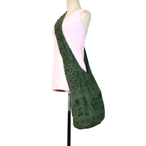 -. Brand : Hippie Hobo Bag -. Feature : Hippie Sling Crossbody Bag Purse / Carefree and comfortable 100% cotton / smaller version of our classic cross-body bag or use like a shoulder bag / a zippered inside pocket. / Size: 15" by 12" 7.5" base with strap Drop: 22" (44-46" END TO END) -. Label : Thailand -. Manufacturer : Thailand -. ProductGroup : Shoes -. ProductTypeName : HANDBAG -. Publisher : Thailand -. Studio : Thailand -. Title : Thai Monk Buddha Cotton Elephant Sling Crossbody Messenger Bag Shlouder Purse Hippie Hobo Color Green