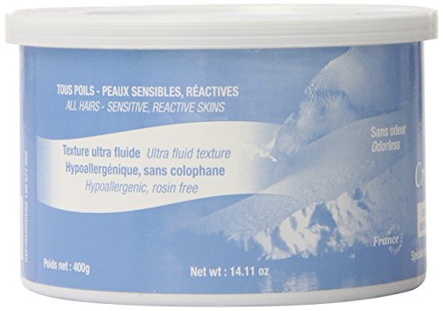 Cristal ocean wax contains is a sleek, hypoallergenic strip wax. Its formula contains synthetic resin and is free of rosin and fragrance for comfortable use on the most sensitive skin. The wax has a transparent bluish color. Its high fluid texture lets you spread it close to the hair root, making removal gentler, safer, and more effective.Feature