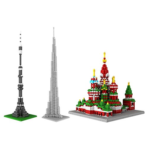 -. Title : LOZ Great Architecture Set Pack of 3 Moscow Tower Khalifa Tower the Cathedral of St Basil Nano block Educational Toy 2940pcs