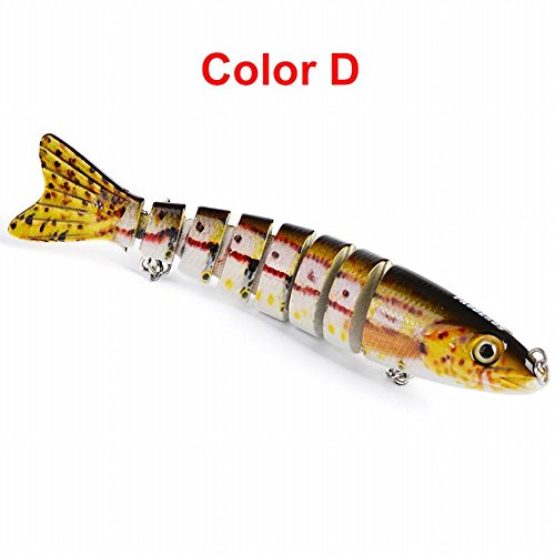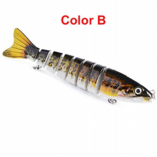-. Brand : Smartcoco -. Feature : Durable ABS construction make it rigged with sharp treble hooks which makes it a powerful catching tool / Brilliant colors and realistic crankbait with lifelike bait fish swimming action to attract fishes which can be used in both saltwater and freshwater / Using the latest coating and surface laser realistic fish pattern with 3D eyes has excellent light lure fish effect / With steel ball inside,the ball is always rolling when dumping which can control barycenter easily and can be casted far / Noise model design which has unique rhythmic sound make crank baits more easily to be attacked by various fishes -. Label : Smartcoco -. Manufacturer : Smartcoco -. MPN : STF-BY0269 -. PartNumber : STF-BY0269 -. ProductGroup : Sports -. ProductTypeName : OUTDOOR_RECREATION_PRODUCT -. Publisher : Smartcoco -. Studio : Smartcoco -. Title : Smartcoco 12cm/19g Artificial Freshwater Sea Bass Lure Fishing Bait 3D Eyes 8 Segments Fish Lures 2 Hooks 6# Fishing Tackle