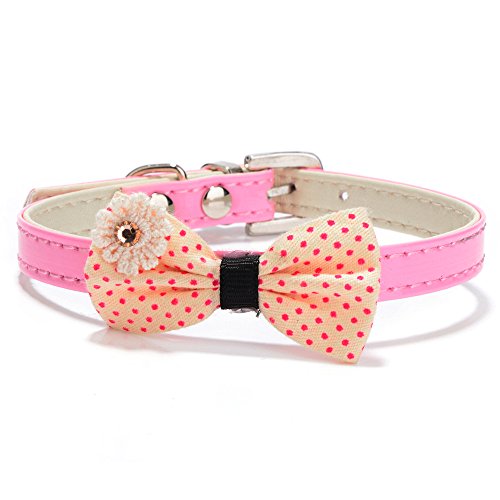 Studio : Tutuba Publisher : Tutuba Binding : Misc. Product Description All Tutuba pet-collars design Interesting styles are based on the idea that pets should feel comfortable and happiness. Material conscience to Faux Leather£¬professional pets design, will be more comfortable and safe. And can be repeated use, not easily deformed. Adjustable collars can fit your pet dog size.and there have bowknot and flower on the collars which make your pet more becautiful. In case of your pets running ,you can see it at first sight . All these efforts, only for you will like our item. For more suggestions, please e-mail us. Stronger enough and softer not stiff for different sizes/colors available. Fashion Bowknot Flower Design. 1cm Wide, 5 holes adjustable . Material: Faux Leather Collar Size: XXS size : Fit for 6"~8"(1CM Wdith *25CM Length) XS size : Fit for 8"~11" (1CM Width *30CM Length) Color : Red, Pink, Black Note: Before you order,Pls sure your dog's neck is suitable for this size (That's very important,Thanks very much!) Package Included: 1 x Pet Collar
