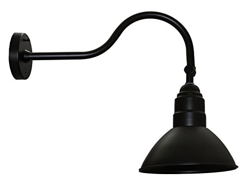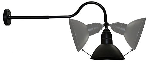 This package includes one Gooseneck Light Fixture. This classic barn light fixture offers both functionality and style with an adjustable shade and classic gooseneck style arm. The shade can be angled allowing the light to be used as a down light, sign light, wall washer, etc. This product includes a free 12" extension arm; which adds an additional 12" to the standard 20" gooseneck arm. Gooseneck arm of 20" is perfect for area lighting, illuminating building façades, etc. Adding the 12" extension arm makes this light fixture ideal for sign lighting. This fixture is fitted with a UL Listed Edison Bulb Holder (E26 or E27 Base); suitable for LED, CFL, or Incandescent light bulbs (100W Max). Supplied in a matte black color finish. Wall Base Diameter 5" (130mm).Total Arm Length (Including 12" Extension) about 32" ( 810mm). Lamp Shade Diameter about 10" (250mm).Feature