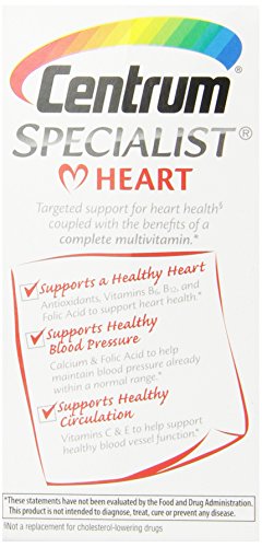 -. Binding : Health and Beauty -. Brand : Centrum -. Label : Centrum -. Manufacturer : Centrum -. PackageQuantity : 1 -. ProductGroup : Health and Beauty -. ProductTypeName : HEALTH_PERSONAL_CARE -. Publisher : Centrum -. Studio : Centrum -. Title : Centrum Specialist Heart, 60 Count