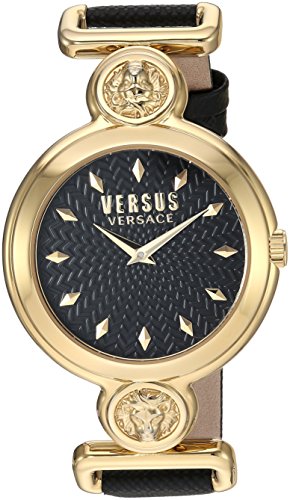 Versus by Versace Women's 'SUNNYRIDGE EXTENSION' Quartz Gold-Tone and Leather Watch, Color Black (Model: VSPOL3118)