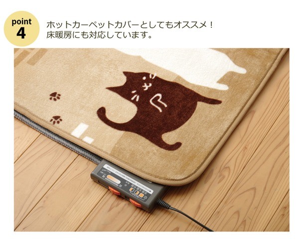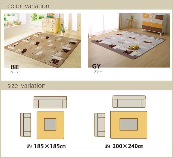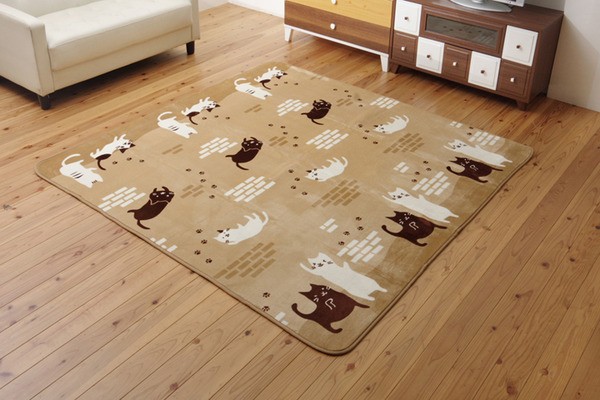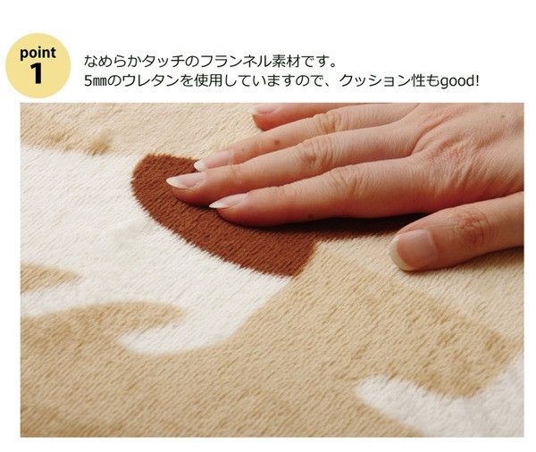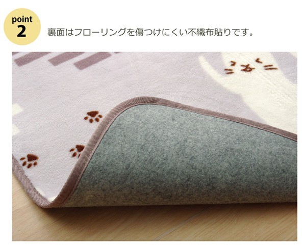人気の猫柄のラグです。表地にはなめらかな肌触りのフラネルを使用しています。ホットカーペットカバーとしてもご使用いただけます。洗濯機で丸洗い可能なウォッシャブルタイプです。