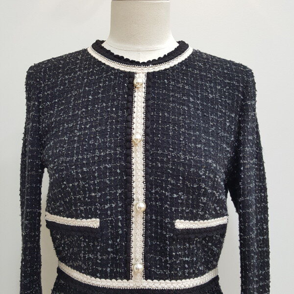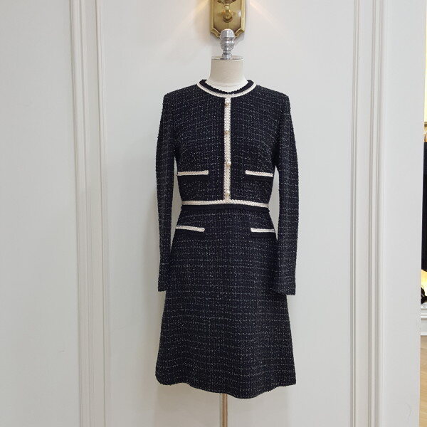 일본수입소재의 트위드 원피스. 가슴라인에 진주 장식이 포인트.