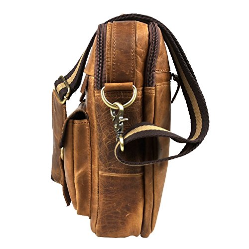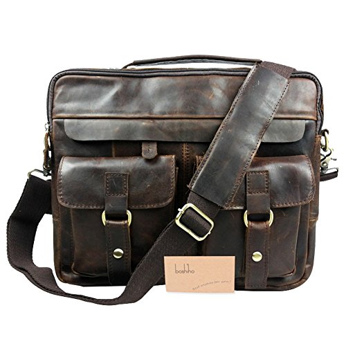 -. Brand : boshiho -. Color : Yellow-brown -. Department : mens -. Feature : Boshiho messenger shoulder bag made by crazy horse leather which is a kind of genuine leather. / Size: 12.99 * 11.2 * 2.75 inch ( L * W * H ) / Color: Yellow-brown and Chocolate / Structure: 2 front flap-over snap pocket + 1zipper pocket + 1 back zipper pocket + 2 Main zipper pocket + 1 side zipper pocket + 1 phone slot + 1 ID slot + zipper closure + adjustable strap / Crazy horse leather can be easy to get scratch on surface please use a soft cloth to gently wipe repeatedly. -. PackageQuantity : 1 -. ProductGroup : Apparel -. ProductTypeName : LAGE -. Size : 12.99 * 11.2 * 2.75 inch ( L * W * H ) -. Title : Boshiho® Crazy Horse Leather Briefcase Satchel Messenger Bag Business Toting Bag