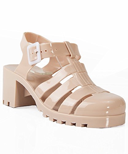 -. Title : Women's Stacked Heel Ankle Strap Jelly Sandal
