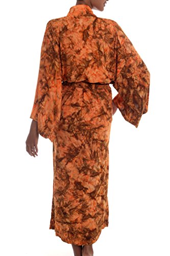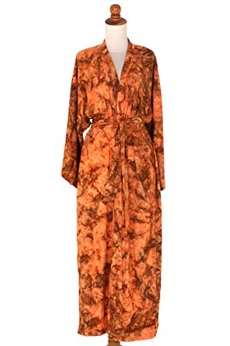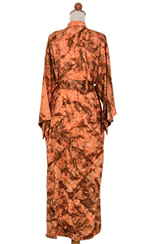 About this item: Handmade by Indonesian artisan Nyoman Nadri, this vibrant saffron women's robe fits loosely and comfortably. The robe features three-quarter length sleeves, two side pockets, and a detachable self-tie belt.... 0
