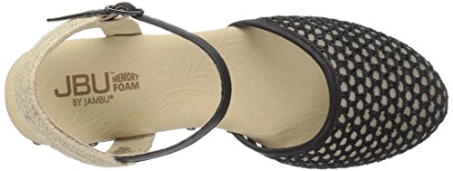 Studio : JBU by Jambu Publisher : JBU by Jambu Binding : Apparel Product Description Go out on the town in the celine, featuring a chunky wooden heel, metallic hardware, and woven netting to kick things up a notch. memory foam footbed guarantees your feet will feel rested and relaxed from morning until night. this summer staple is a modern, trendy, must-have. 0