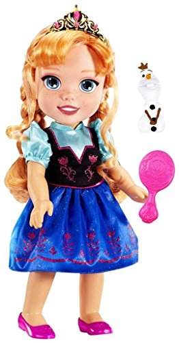 -. Binding : Toy -. Brand : Disney Frozen -. ClothingSize : One Size -. Color : Blue / Pink -. Department : girls -. EAN : 0678352310209 -. Feature : Adventurous Anna is dressed in her iconic outfit from the film / Has beautiful braided hair / Hairbrush and royal tiara / Anna comes with her adorable and silly friend Olaf -. IsAdultProduct : 0 -. Label : Frozen -. LegalDisclaimer : No refunds -. Manufacturer : Frozen -. Model : 31069-1 -. MPN : 31069-1 -. PackageQuantity : 1 -. PartNumber : 31069-1 -. ProductGroup : Toy -. ProductTypeName : TOYS_AND_GAMES -. Publisher : Frozen -. Size : One Size -. Studio : Frozen -. Title : Disney Frozen 31069-1 Toddler Anna Doll with Royal Reflection Eyes -. UPC : 678352310209 -. Warranty : No Warranty