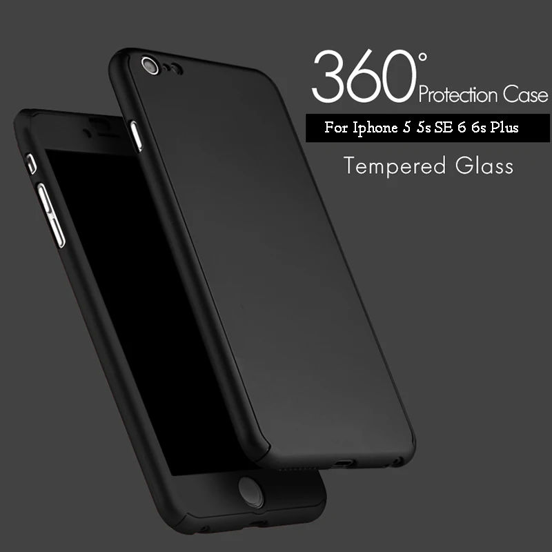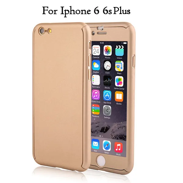Style 2:360 Degree Case For fundas iPhone 6 6S Plus Case Tempered Glass