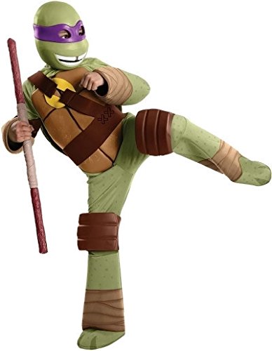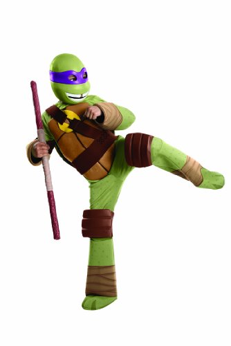 -. Binding : Toy -. Brand : Rubie's -. ClothingSize : One Size -. Color : Green -. Department : boys -. Feature : Stuff shell with paper for 3D effect / Officially licensed by Nickelodeon / Child Small fits 44 to 48 Inch tall with 25 to 26 inch waist / Rubie's has the costumes and accessories you and your family will enjoy at Halloween and all year long -. Label : Rubies - Domestic -. Manufacturer : Rubies - Domestic -. Model : 886761S-P -. MPN : LYSB00BPQ5TZO-TOYS -. NumberOfItems : 1 -. PackageQuantity : 1 -. PartNumber : LYSB00BPQ5TZO-TOYS -. ProductGroup : Toy -. ProductTypeName : CHILDRENS_COSTUME -. Publisher : Rubies - Domestic -. Size : One Size -. Studio : Rubies - Domestic -. Title : Teenage Mutant Ninja Turtles Deluxe Donatello Costume -. Warranty : No Warranty