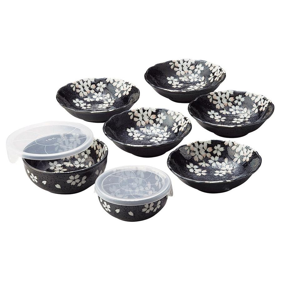 シックな桜のデザインの小鉢と蓋付鉢のセットです。 |