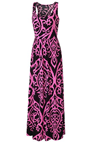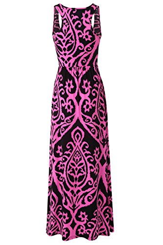 Unique Design: Maxi tank dress comes with bright damask print and 2 side accent pockets included for every day function.The top is fitted and the skirt is flowy,make your boobs looks bigger than you really are.Great summer maxi dress for petite and curvy women