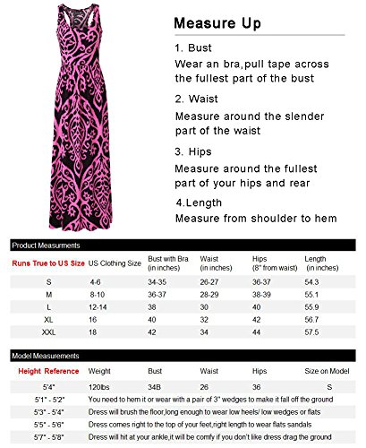 Features: Cute summer dress with sleeveless tank top,sexy scoop neck and raceback,so comfy to wear to the pool party!The waist has elastic,comfortable against your skin.A line maxi dress with flowy skirt,very flattering and summery,would hide your little belly well.It could also be used as a maternity dress for mom.Great long dresses for women casual,party wedding and evening