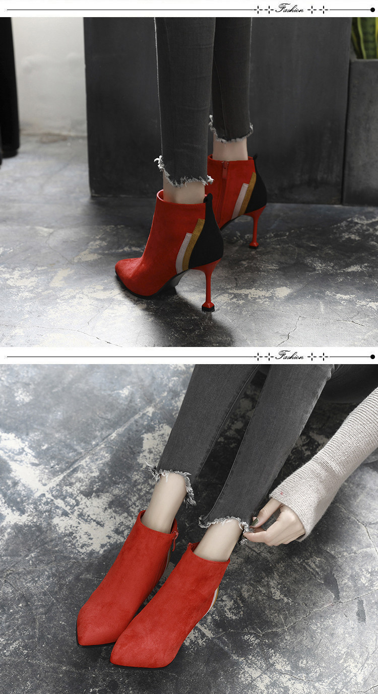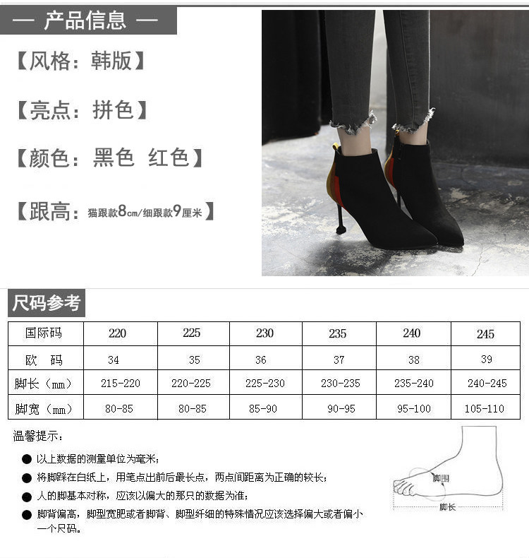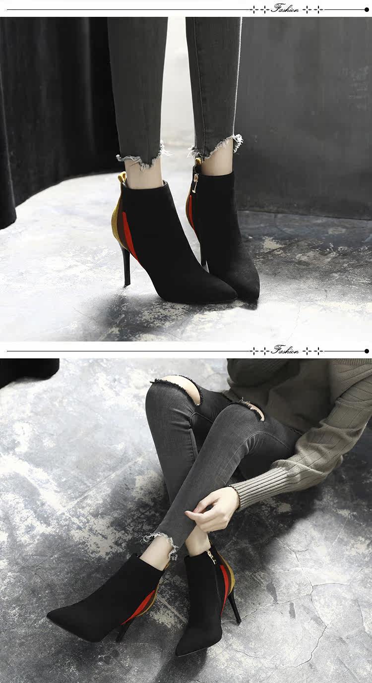 小跟短靴女靴子2017春秋冬季新款尖头细跟高跟鞋韩版单靴百搭性感