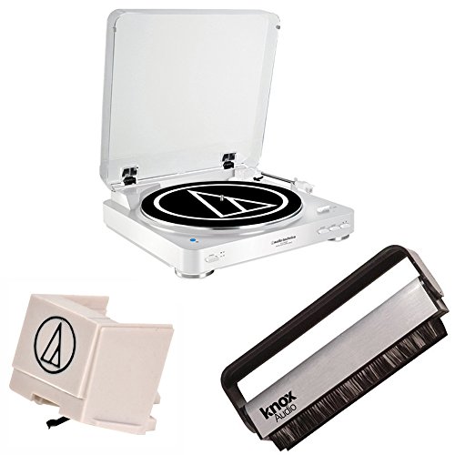 Audio Technica AT-LP60WH-BT Bluetooth Wireless Belt Turntable w/ Replacement Stylus & Vinyl Brush (White)