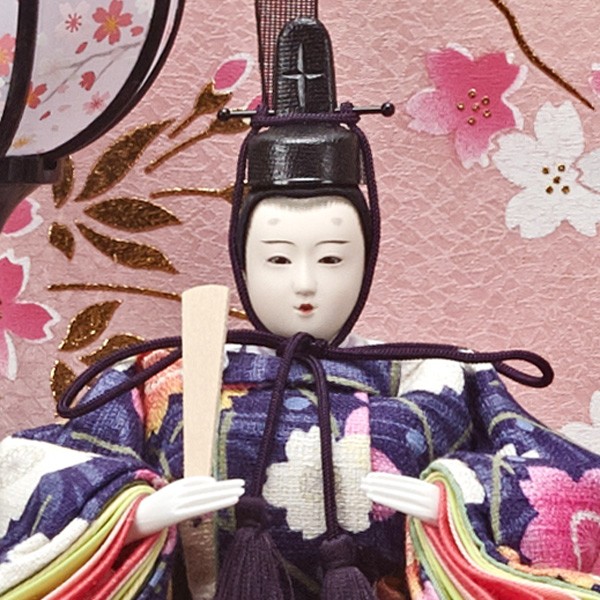 ・台座・屏風等には落ち着いた色目の雛人形セット。