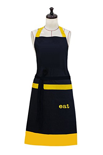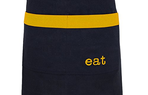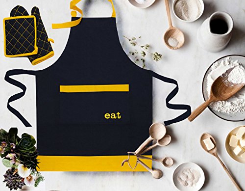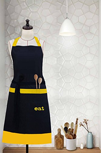 Milano Home "Eat" Embroidered 100% Cotton Professional Apron for Men & Women with Adjustable Neck & Centre Pockets Perfect for Cooking BBQ Baking Full in Length - Yellow