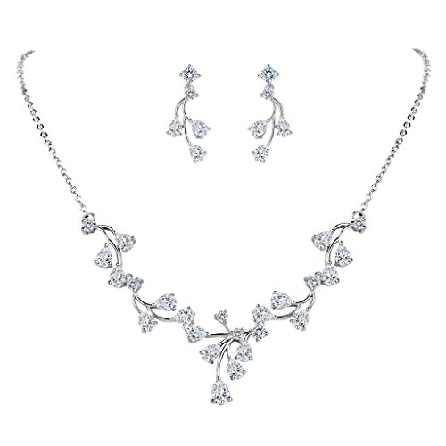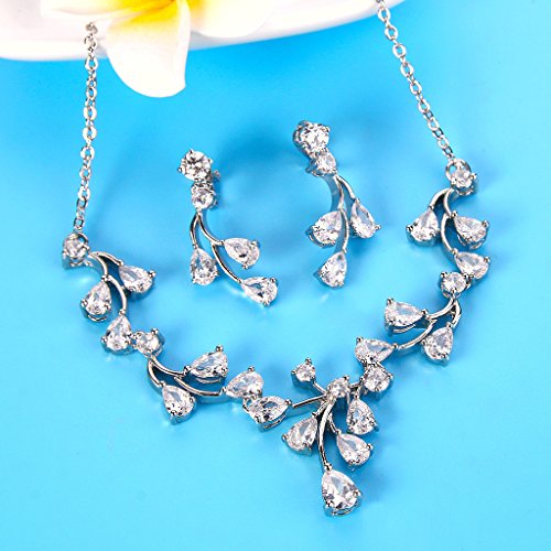 -. Title : EleQueen Women's Silver-tone Cubic Zirconia Teardrop Leaf Bridal Necklace Pierced Earrings Set Clear