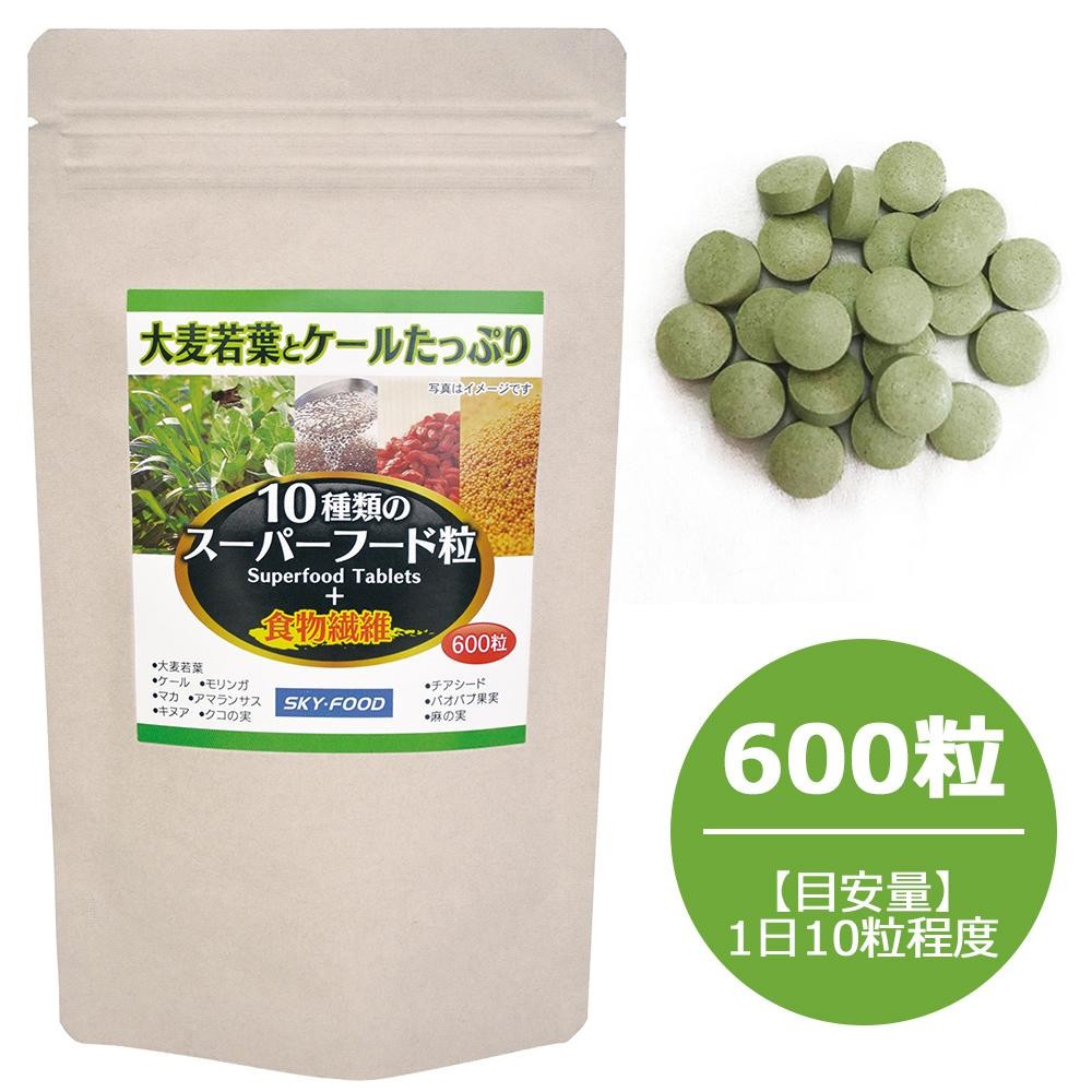 食物繊維配合で毎日元気にすっきり!!大麦若葉&ケールの粉末を中心に、モリンガ・マカ・クコの実・チアシード・バオバブ果実・キヌア・アマランサス・麻の実等、10種類のスーパーフードの粉末をギュッ!!と固めて飲みやすい粒にしました。食品添加物は使用しておらず、食品素材のみで粒にしています。 |