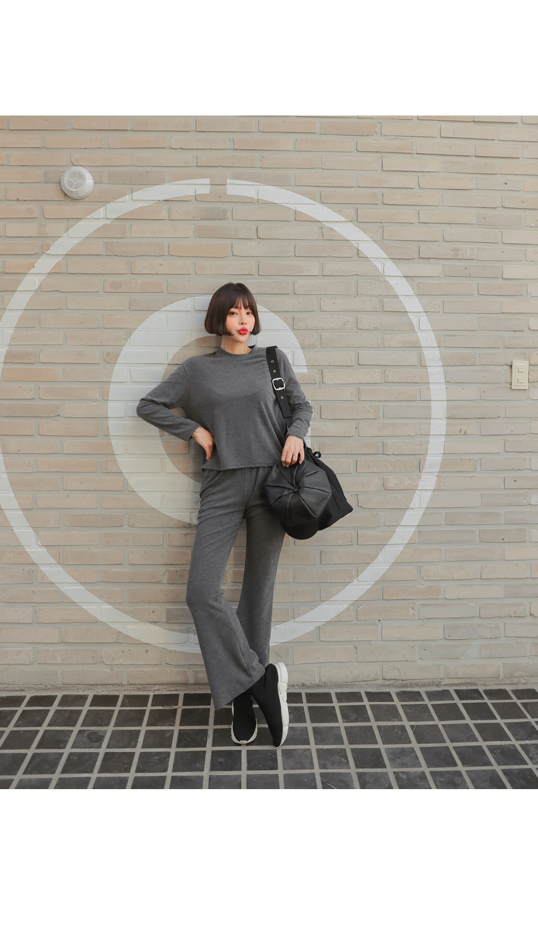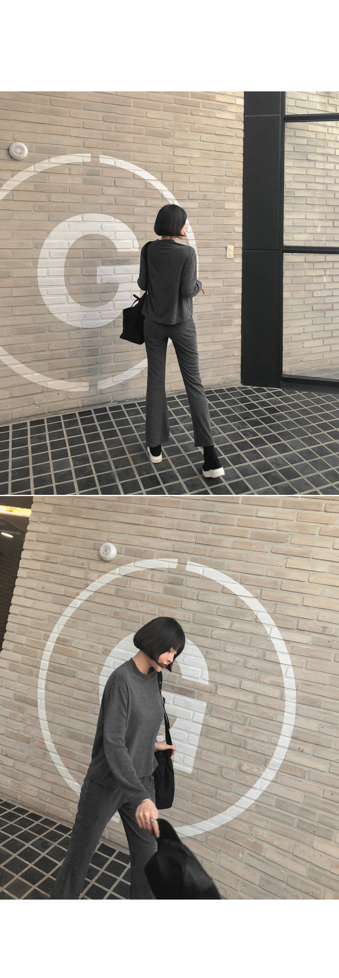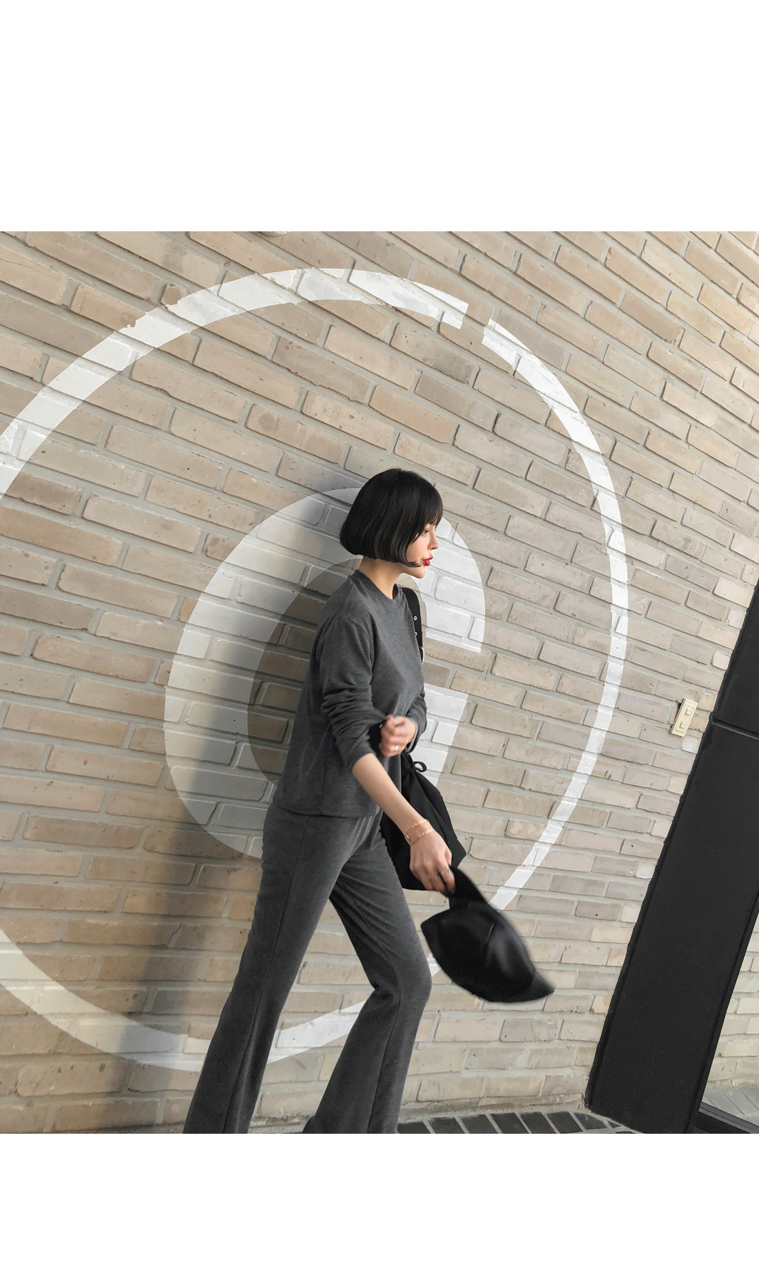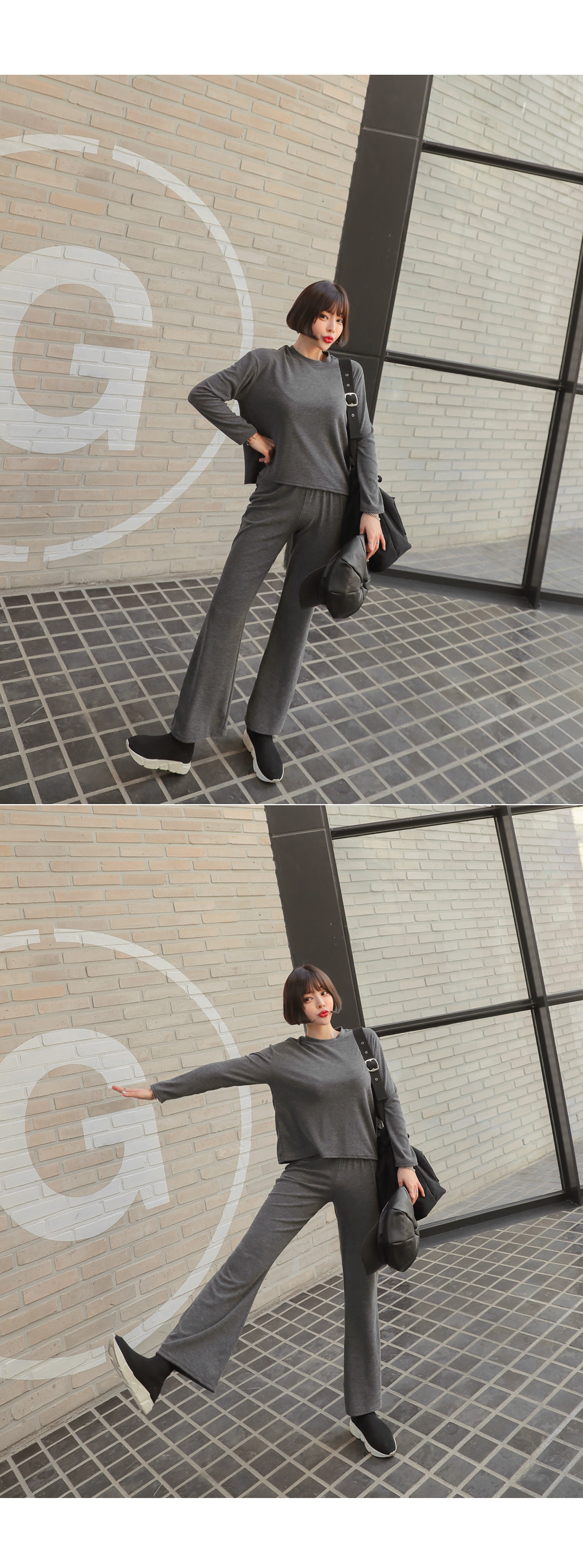 같은 원단의 티셔츠와 부츠컷 팬츠가