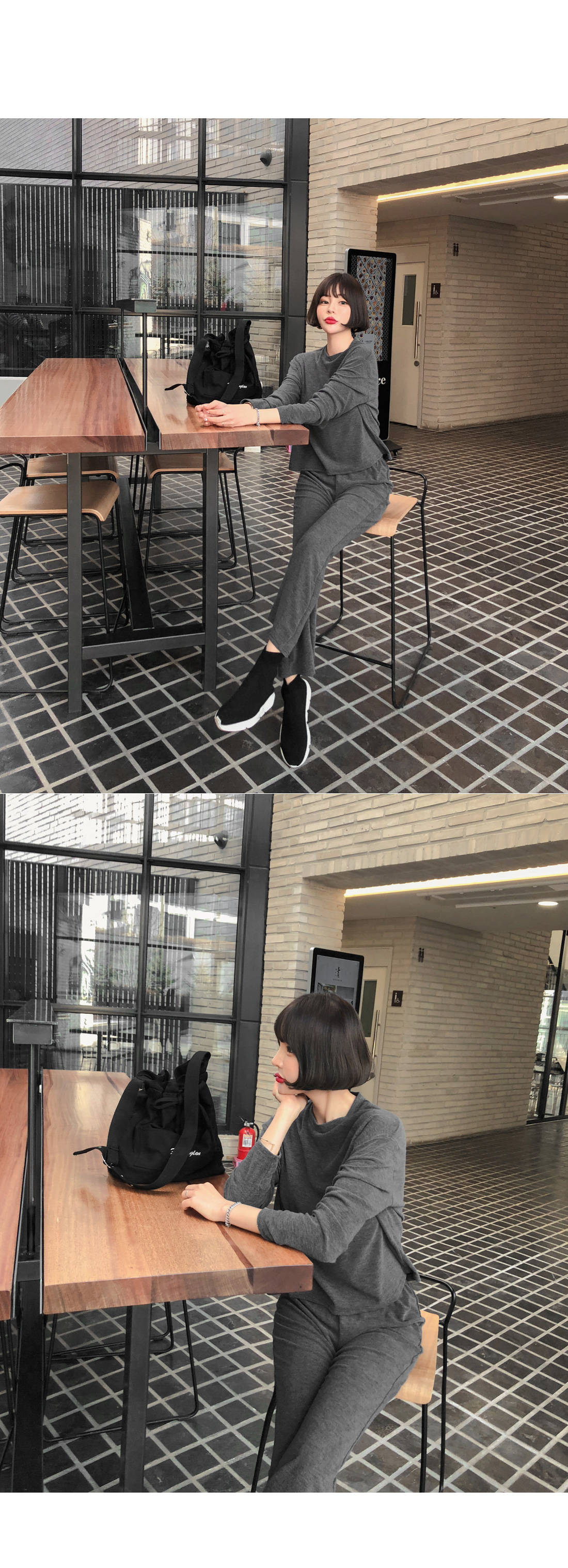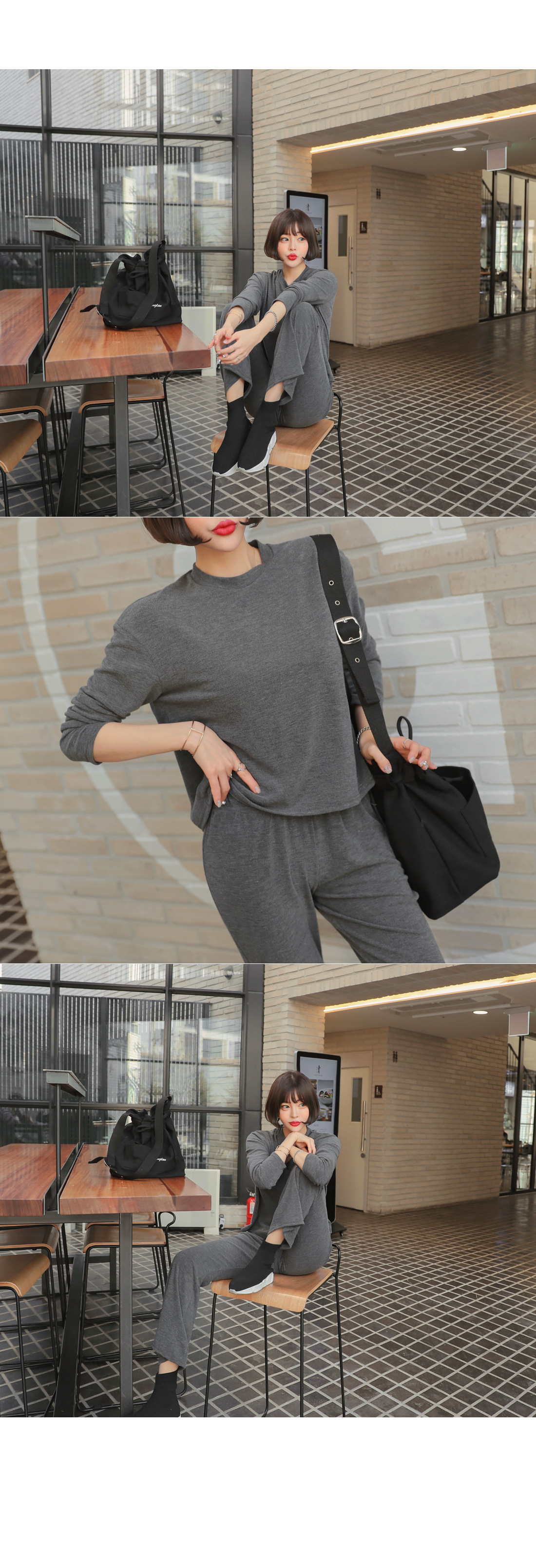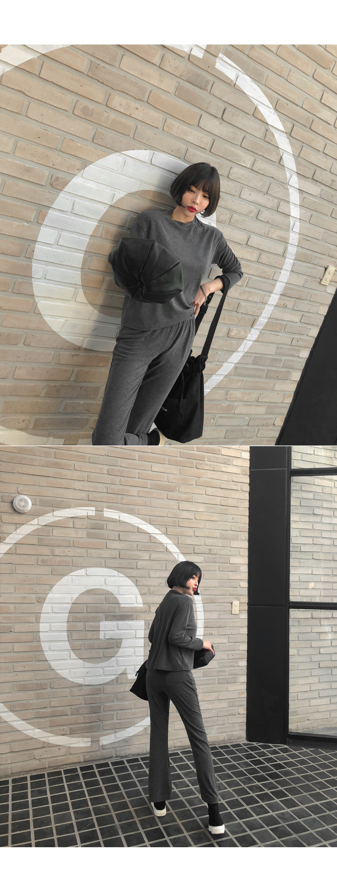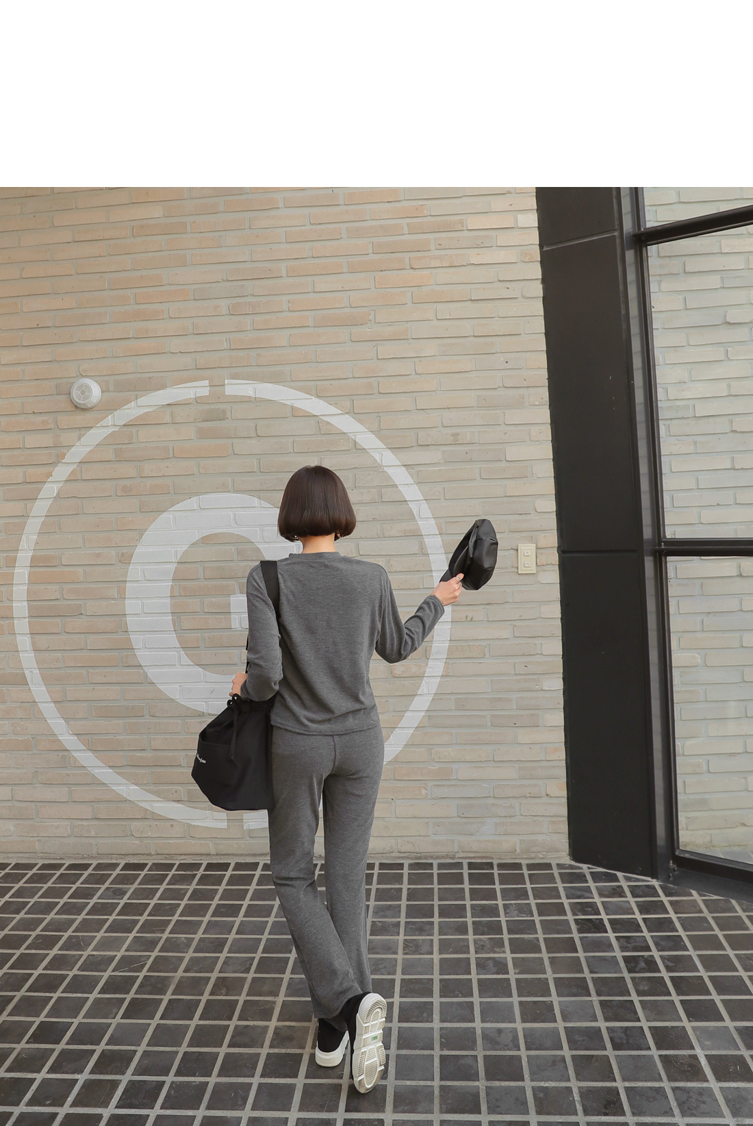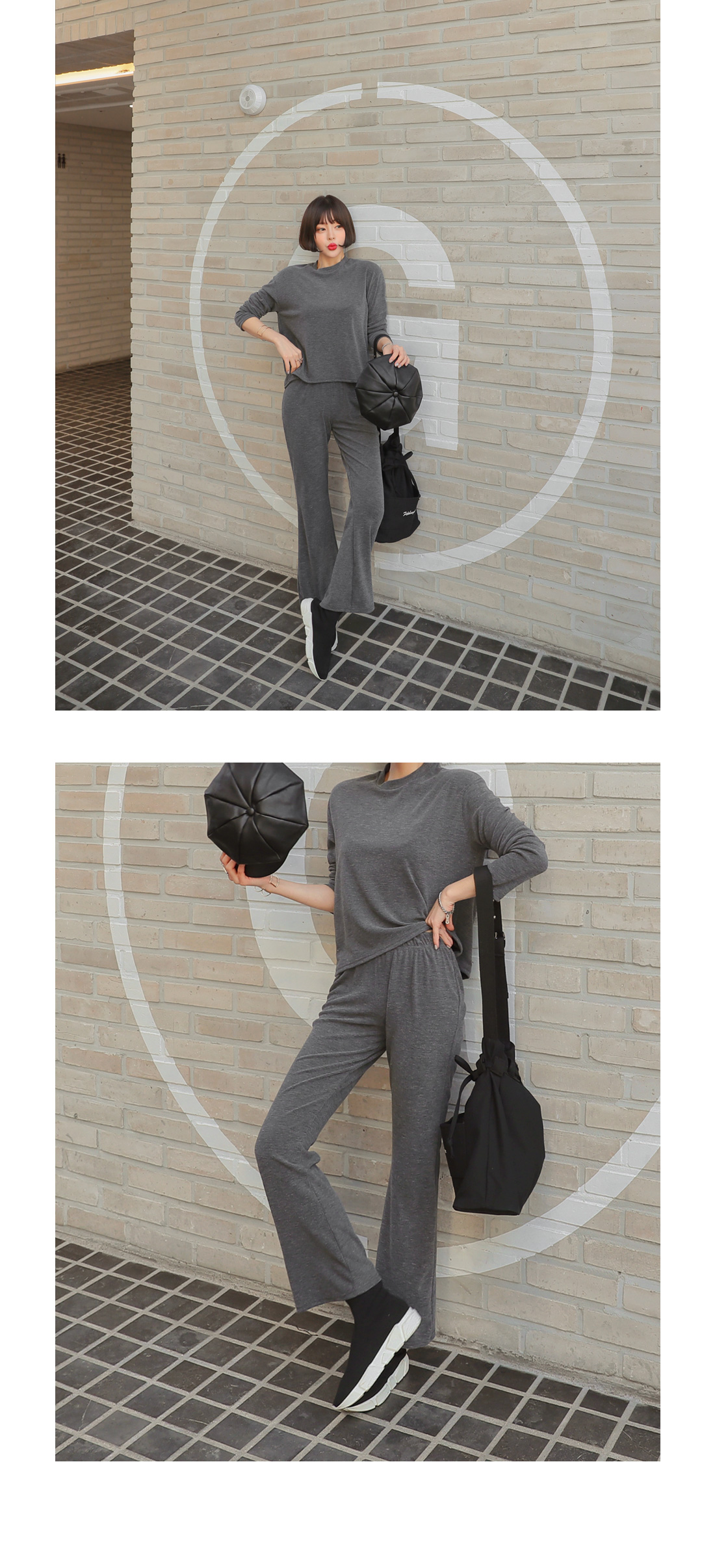 같은 원단의 티셔츠와 부츠컷 팬츠가