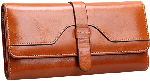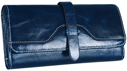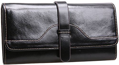 Heshe Lux Women's Waxy Cowhide Leather Long Wallet Clutch Purse Handbag Card Holder Case with Coin Zipper Pocket (Black)