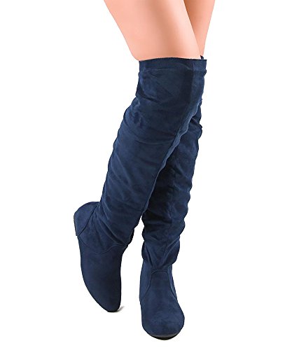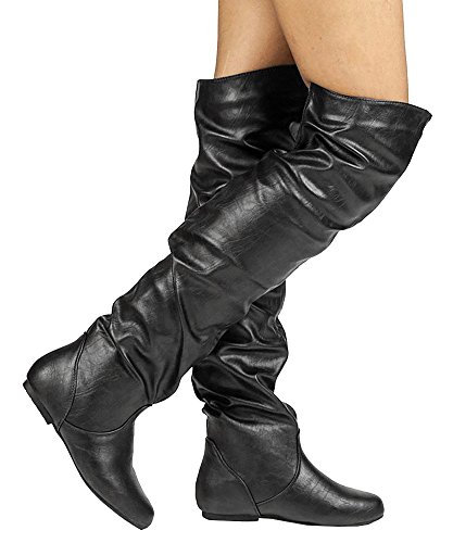 | (RF ROOM OF FASHION)/Women's/Boots/DIRECT FROM USA/RF ROOM OF FASHION Trend-Hi Over-The-Knee Thigh High Flat Slouchy Shaft Low Heel Boots |