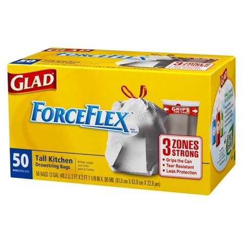 -. Title : Glad Forceflex Tall Kitchen Drawstring Trash Bags 13 Gal 50 Ct