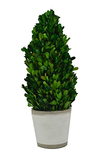 Galt International Cone Topiary Plant with White Pot, 12-Inches Naturally Preserved Real Boxwood